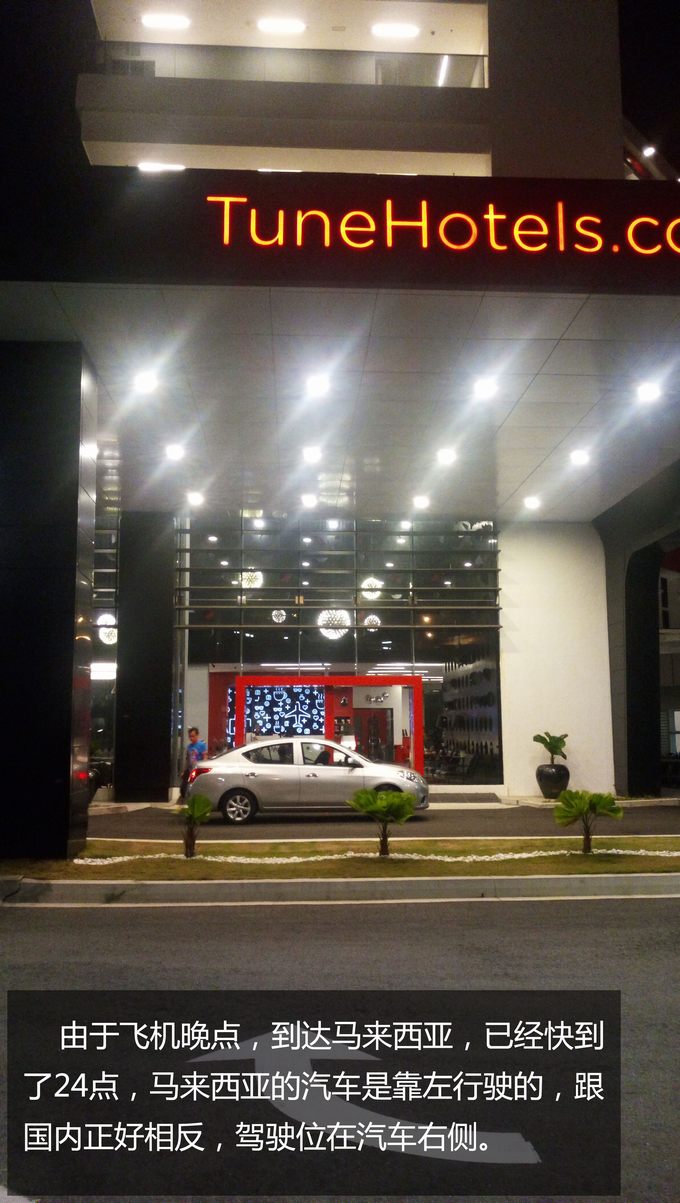 由于飛機晚點,到達馬來西亞,已經(jīng)快到了24點,馬來西亞的汽車是靠左行駛的,跟國內(nèi)正好相反,駕駛位在汽車右側(cè)。